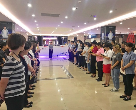 首先,于總主持了業(yè)務(wù)部的大晨會(huì),對(duì)業(yè)務(wù)部全體員工及在場(chǎng)商戶(hù)定下了新的目標(biāo):“帶出一流的隊(duì)伍,創(chuàng)出一流的業(yè)績(jī),展現(xiàn)一流的風(fēng)貌!”大家共事與武昌店這個(gè)高端賣(mài)場(chǎng)中,小到服裝禮儀、陳列迎賓,大到店面管理、日常銷(xiāo)售,都要對(duì)自己高標(biāo)準(zhǔn),嚴(yán)要求,力爭(zhēng)與武昌店的高端賣(mài)場(chǎng)形象相匹配。