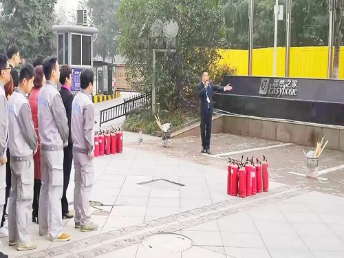 全員集合點名完畢之后,由物業(yè)保衛(wèi)部經理孫建華對第一環(huán)節(jié)的疏散演習做出點評,號召大家要注重安全,警惕一切可能引起危險的行為。隨后,徐東消防中隊的張隊長進行了詳細的消防安全知識的講解培訓。在進行案例分析的過程中,進行安全消防意識的輸入、自防自救和緊急逃生方法的講解。緊接著,由救火英雄“抱火哥”皇甫江武向全體員工演示了防毒面具及滅火器的使用方法中,并對導購及員工對滅火器的實操進行指導。大家的學習熱情非常高,踴躍上前嘗試實踐操作,將鐵桶中熊熊燃燒的大火撲滅!通過消防演習,大家學習到了消防知識和消防器材的使用方法,進一步提升了員工應對緊急情況的處理能力。
